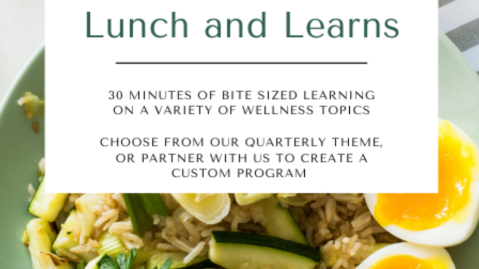 Level up your lunch break by hosting a Lunch & Learn for your team! These interactive 30 minute sessions focus on a variety of wellness topics, delivered live on Zoom. We explore a new topic each quarter, but we can also customize programming that's more specific for your current needs.